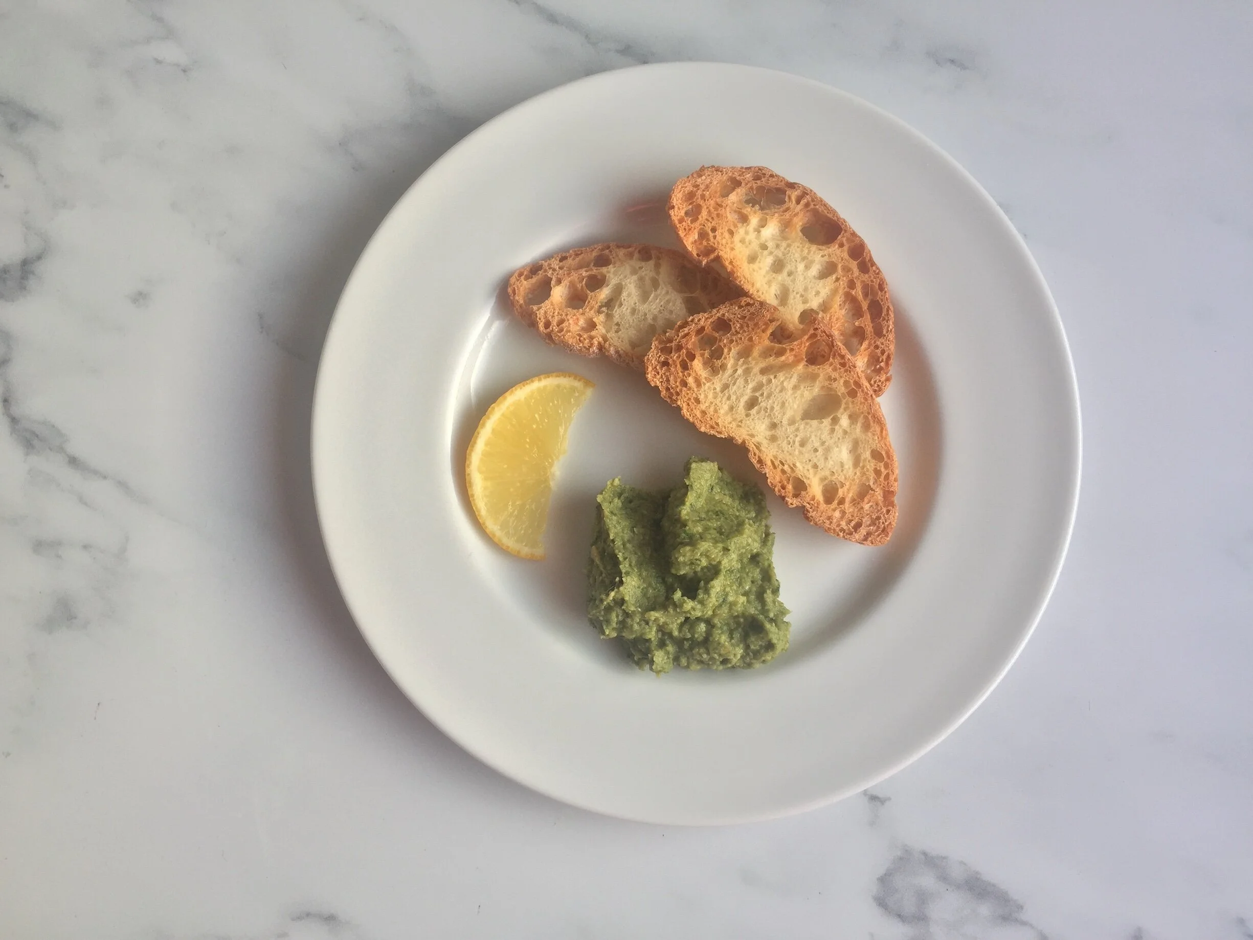 Carefully pour the hot ingredients from the skillet into a food processor. Add the remaining ingredients and pulse into a thick paste forms. Taste to adjust seasoning and serve with crispy crostini.
