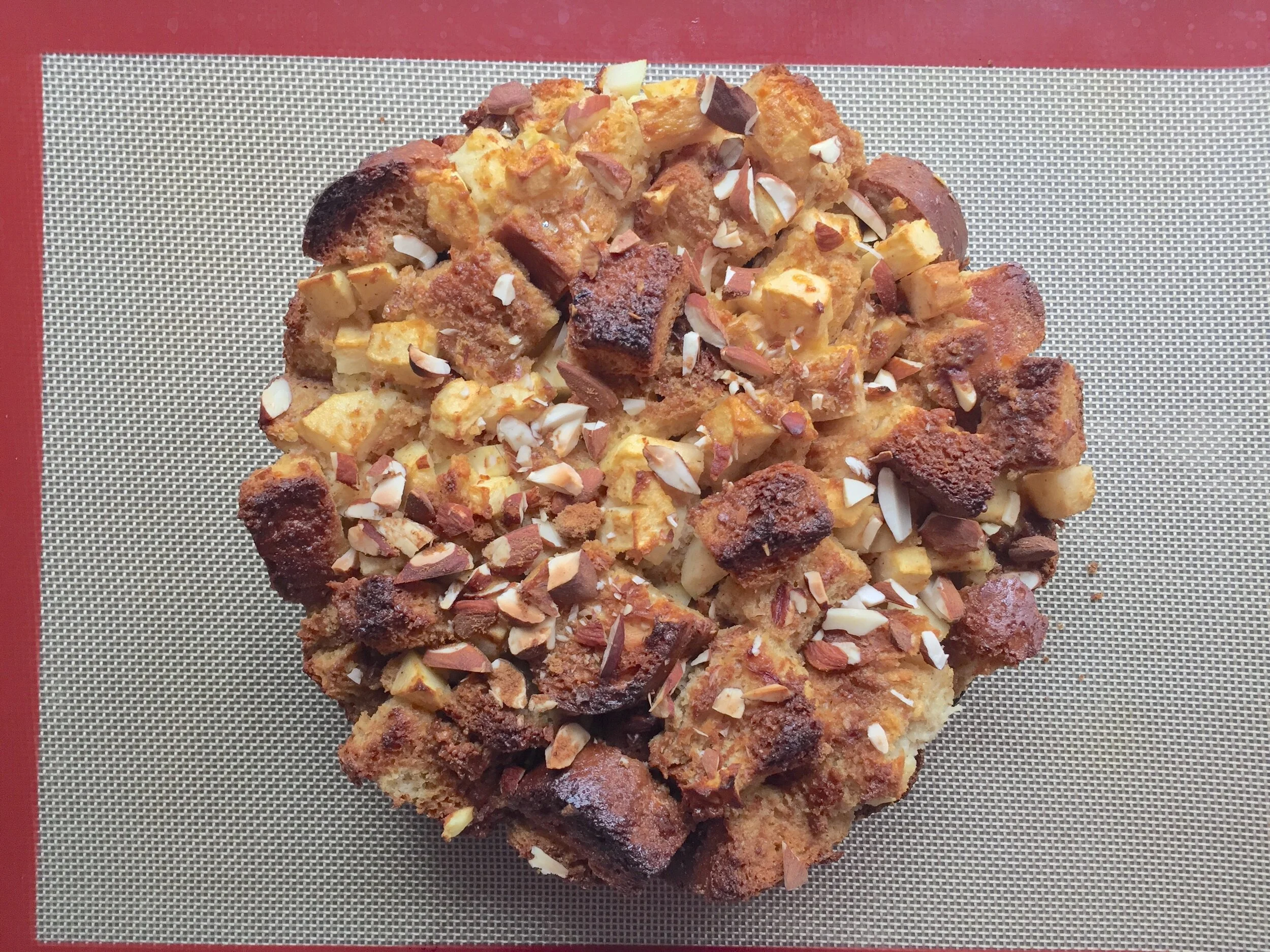 We had a lovely loaf of brioche that dried out before we could finish it. I didn’t have slivered almonds on hand, but did have raw and just chopped them up for the topping. I am a big believer in dessert. I am for healthier versions or fruit most of the time. When I do delve into a dessert recipe, one tip I’ve learned in to make a smaller amount. Taste the real dessert, but don’t make so much that it begs you to eat it for 5 days in a row! We hope you like this one as much as we did with a cup of tea on a cold afternoon in London.