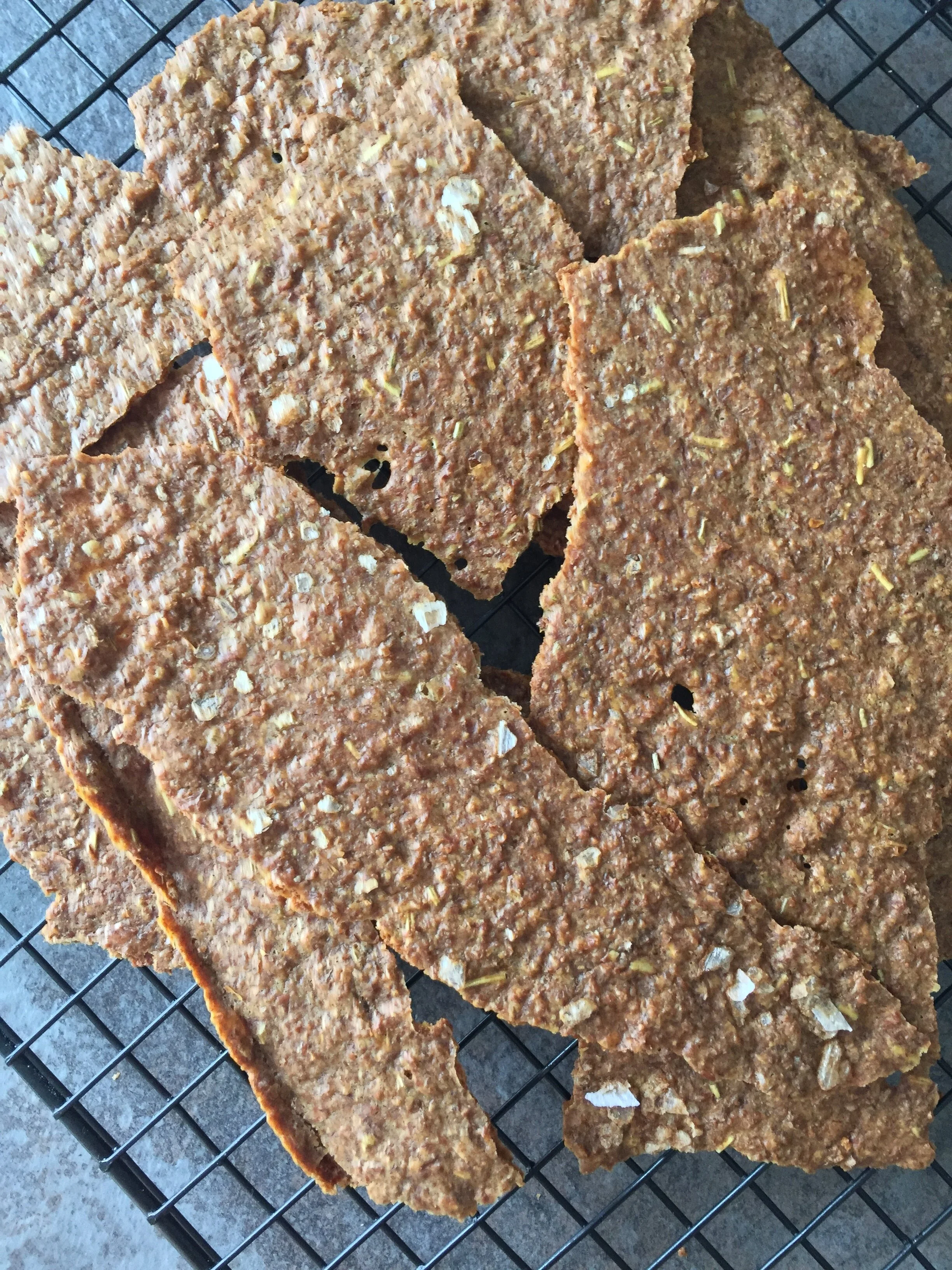 Bake for 40-60 minutes or until the crackers are a deep golden brown, but not burnt. Check the crackers after 40 minutes to avoid over baking. Cool the large cracker sheet and break into pieces and enjoy with your favorite cheeses or dips. These keep for 1 week in a sealed container.